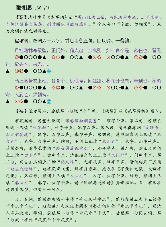 又,酷相思前后段结二句,不可呆板地叠句、叠词,要注重变化,可并列、推进,转折。如并列时,位置有可置换,不可置换。如转折时,可先转后合,亦可先合后转。